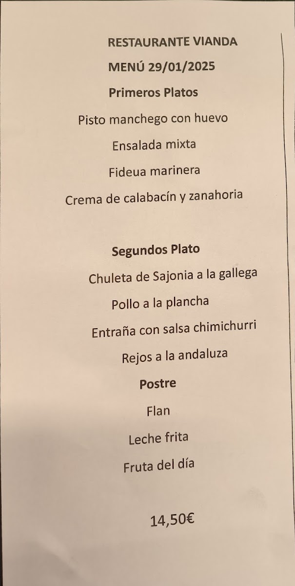 Nestled in the charming neighborhood of Hortaleza, Madrid, Vianda invites diners to relish a taste of Spanish culinary tradition. The restaurant boasts a cozy atmosphere, accentuated by its spacious terrace, perfect for al fresco dining during the warmer months. Guests frequently rave about the quality of the dishes; highlights include the generous cachopo, the hearty fabada, and the beloved croquetas that receive high praise. Vianda’s menú del día offers a delightful variety of options at a competitive price of €14.50, making it a superb value. Customer reviews reflect a consistent appreciation for the attentive service and tranquil ambiance, often complemented by soothing background music. Whether you're stopping in for tapas or looking for a satisfying meal with family, Vianda stands out as a welcoming haven where flavors and comfort meet.